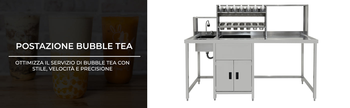 Che stiate preparando classici milk tea o creazioni audaci e personalizzate, questa postazione fornisce tutto il necessario per produrre bevande in modo efficiente mantenendo un allestimento raffinato e professionale che impressionerà i vostri clienti.