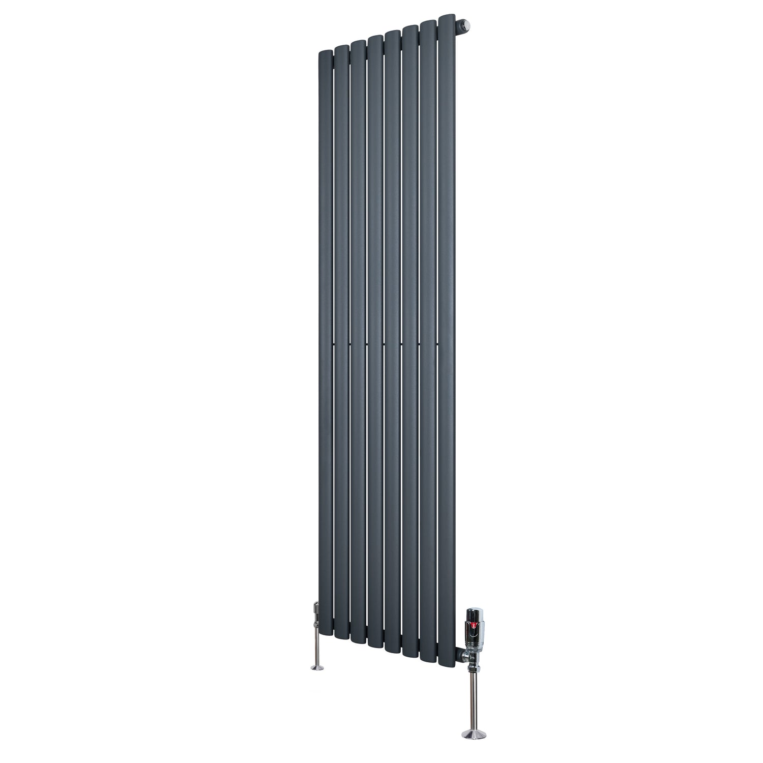 Radiatore Ovale a Colonna Singola Verticale con Valvole 1600 x 480 mm Antracite