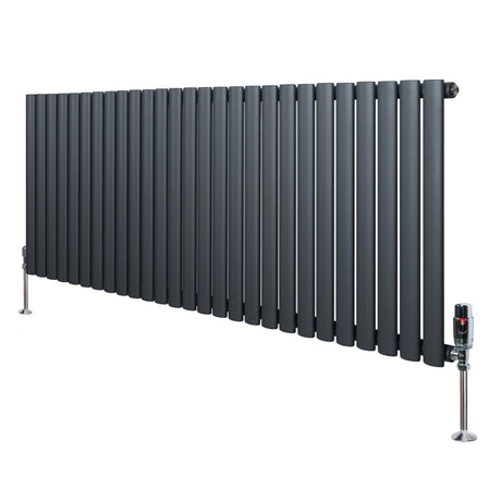 Radiatore Ovale a Colonna Singola Verticale con Valvole 1600 x 360 mm Antracite