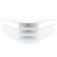 Il bancone angolare LM60 completa la configurazione migliorando l’ottimizzazione degli spazi. Il suo design curvo consente un’installazione fluida negli angoli o tra moduli lineari, creando un layout armonioso. I tre ripiani aperti sul lato cliente assicurano visibilità e facile accesso ai prodotti esposti.