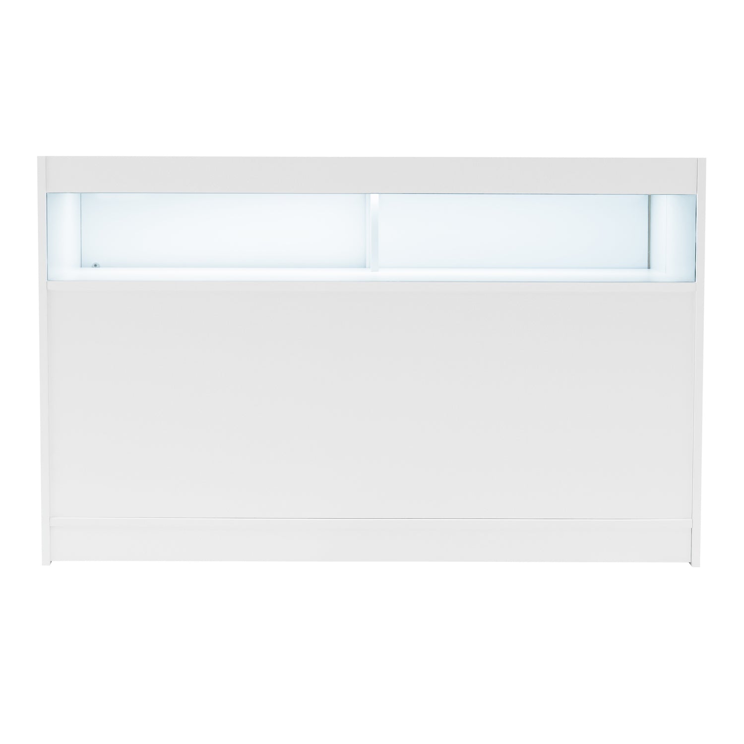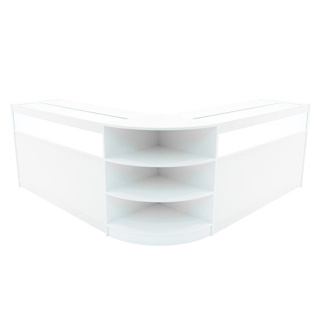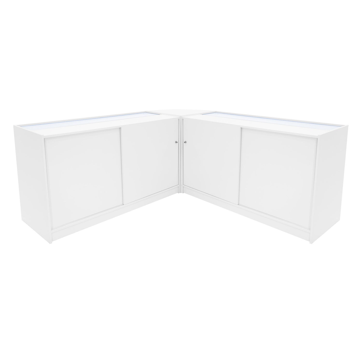 Allestisci una vetrina elegante e professionale con questo set di banconi LED bianco, composto da due B1500 e un bancone angolare curvo LM60 – la soluzione perfetta che unisce stile, funzionalità e flessibilità per qualsiasi negozio moderno.