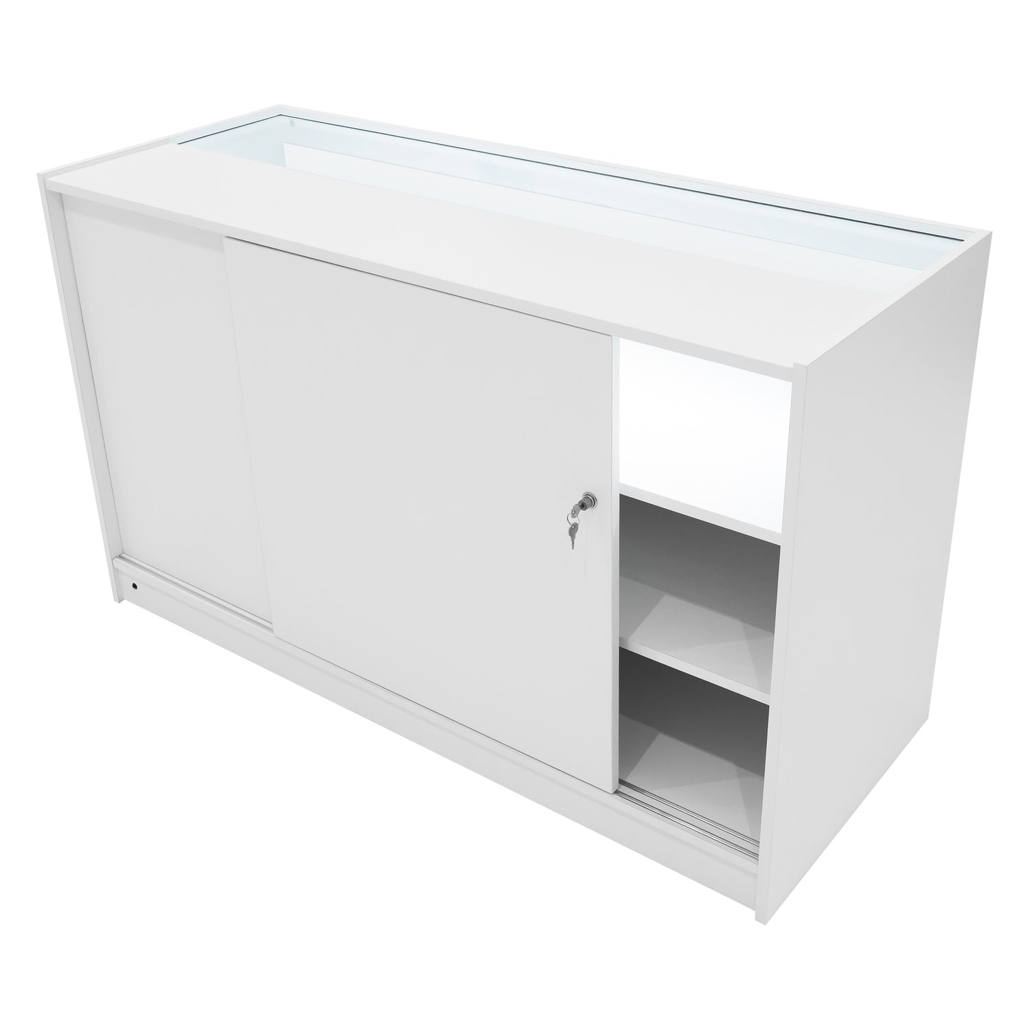 Il bancone B1500 LED offre un'esposizione moderna ed efficace, grazie alla luce LED bianca brillante che valorizza ogni prodotto anche in ambienti poco illuminati. Con un ripiano espositivo in vetro e due ripiani chiusi, è ideale per mostrare articoli di valore come gioielli, accessori o prodotti di fascia alta. Le ante scorrevoli con chiusura a chiave garantiscono sicurezza e ordine, lasciando visivamente pulita la parte frontale rivolta al cliente.