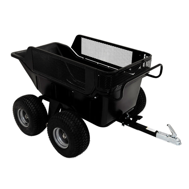 Costruito con la massima attenzione alla durabilità, è dotato di un robusto telaio in acciaio e di una vasca in polietilene ad alta densità, capaci di resistere a un uso intensivo e frequente. Le 4 ruote in gomma da 18 pollici garantiscono stabilità e trazione eccellente anche su terreni irregolari o morbidi. Questa combinazione di materiali resistenti e ruote robuste rende il rimorchio pronto ad affrontare qualsiasi terreno di lavoro.
