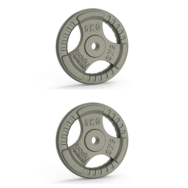 2x Piastre da 5kg in Ghisa – Foro Standard da 1” con Tripla Impugnatura