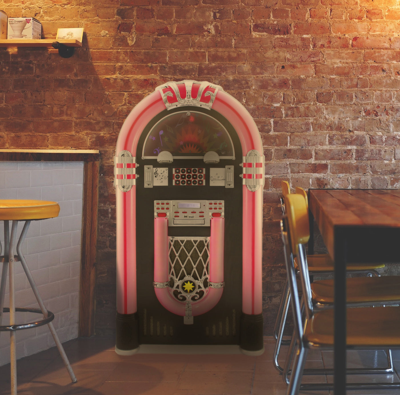 Unendo un affascinante stile vintage con le più avanzate tecnologie del ventunesimo secolo, questo jukebox da pavimento trasforma completamente qualsiasi ambiente in cui viene collocato, diventando rapidamente il fulcro di qualsiasi festa.
