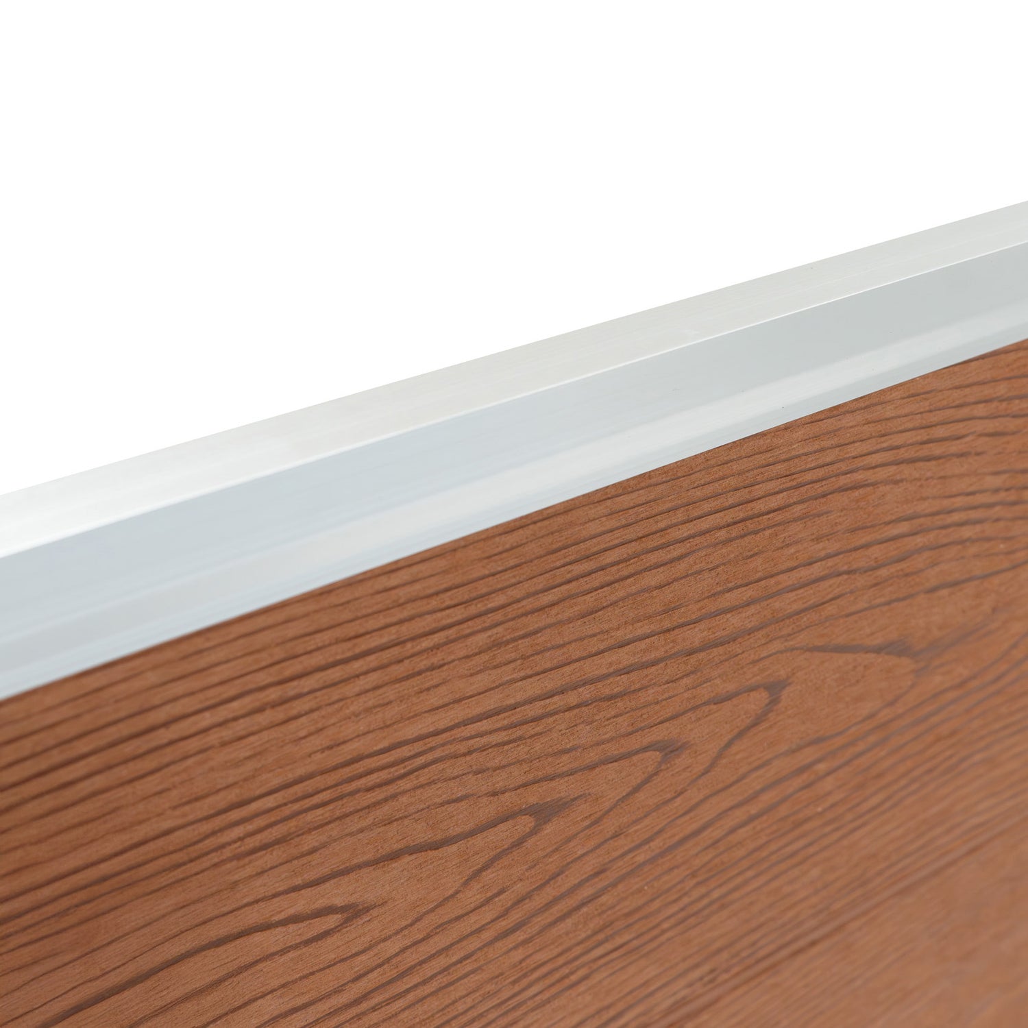 Il design double-face rende questo pannello estremamente versatile: da un lato presenta una finitura effetto legno, dall’altro uno stile moderno a doghe. Entrambi i lati sfoggiano una raffinata finitura marrone, che richiama l’eleganza del legno naturale ma senza necessità di manutenzione regolare.