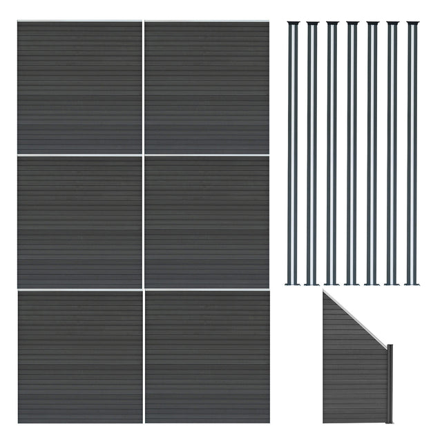 Trasforma il tuo spazio esterno con questo elegante set di recinzione in composito, che unisce perfettamente stile, robustezza e innovazione. Fornito con 6 pannelli da 185 cm (6ft), 1 elemento angolare inclinato e solidi pali in alluminio, rappresenta la soluzione ideale per delimitare il giardino o rinnovare i confini esterni della proprietà.