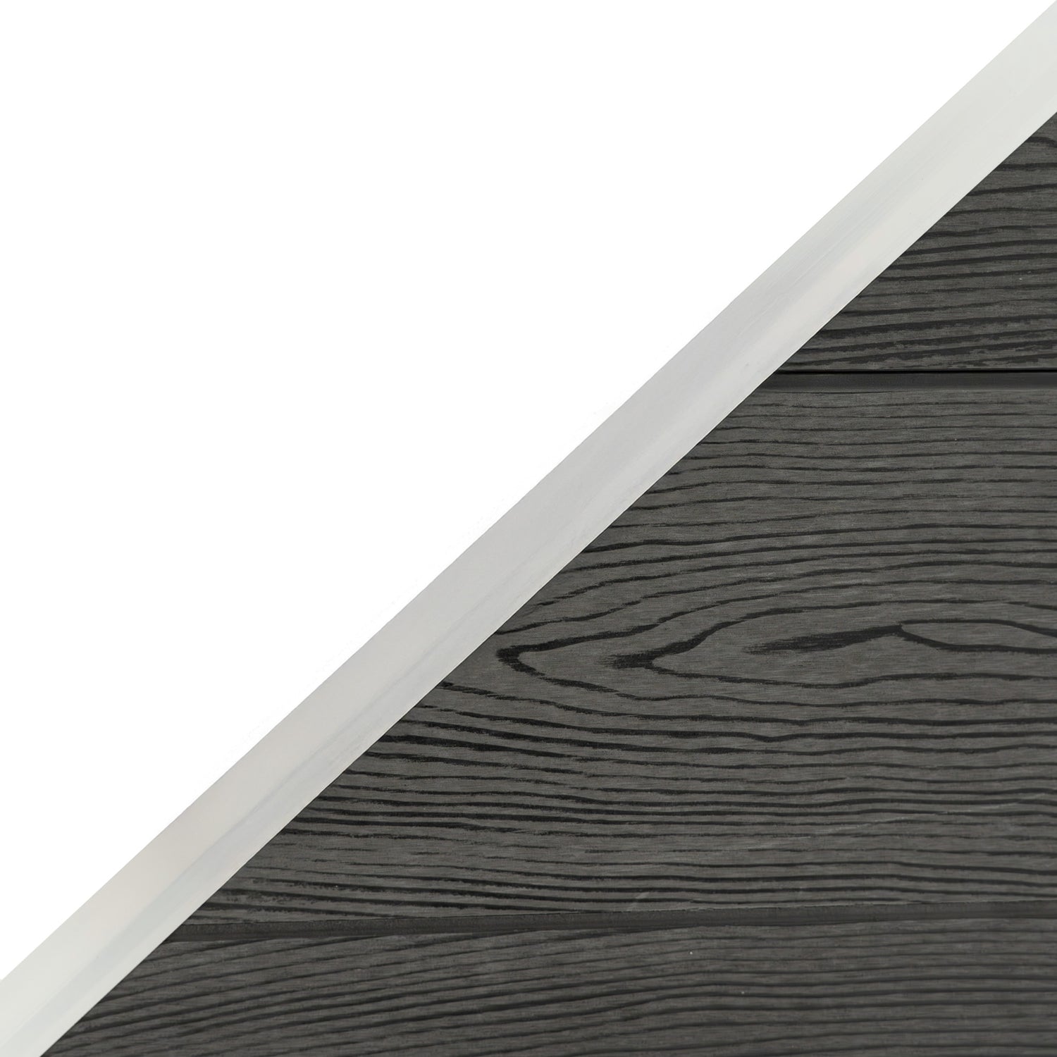 La struttura inclinata è composta da cinque doghe a larghezza intera abbinate a quattro doghe angolate di dimensioni decrescenti, creando un profilo unico e resistente. Il montaggio è semplice e intuitivo: il lato inclinato è supportato da un palo in alluminio più corto incluso, mentre il lato alto è progettato per incastrarsi direttamente nel sistema di pali compositi esistenti, per un’installazione sicura e uniforme.