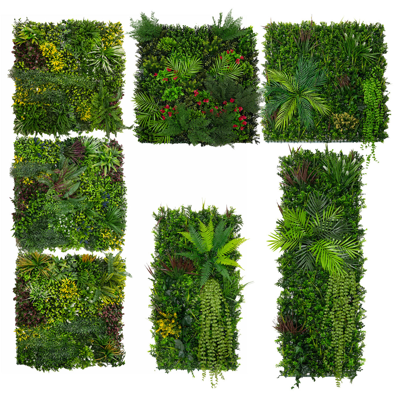 Con dimensioni di 100cm x 100cm, queste piastrelle offrono un’ampia copertura, permettendoti di ricreare facilmente l’effetto di un autentico giardino verticale. La loro struttura flessibile e adattabile consente una perfetta integrazione in qualsiasi spazio, sia per piccole aree decorative che per intere superfici verdi.