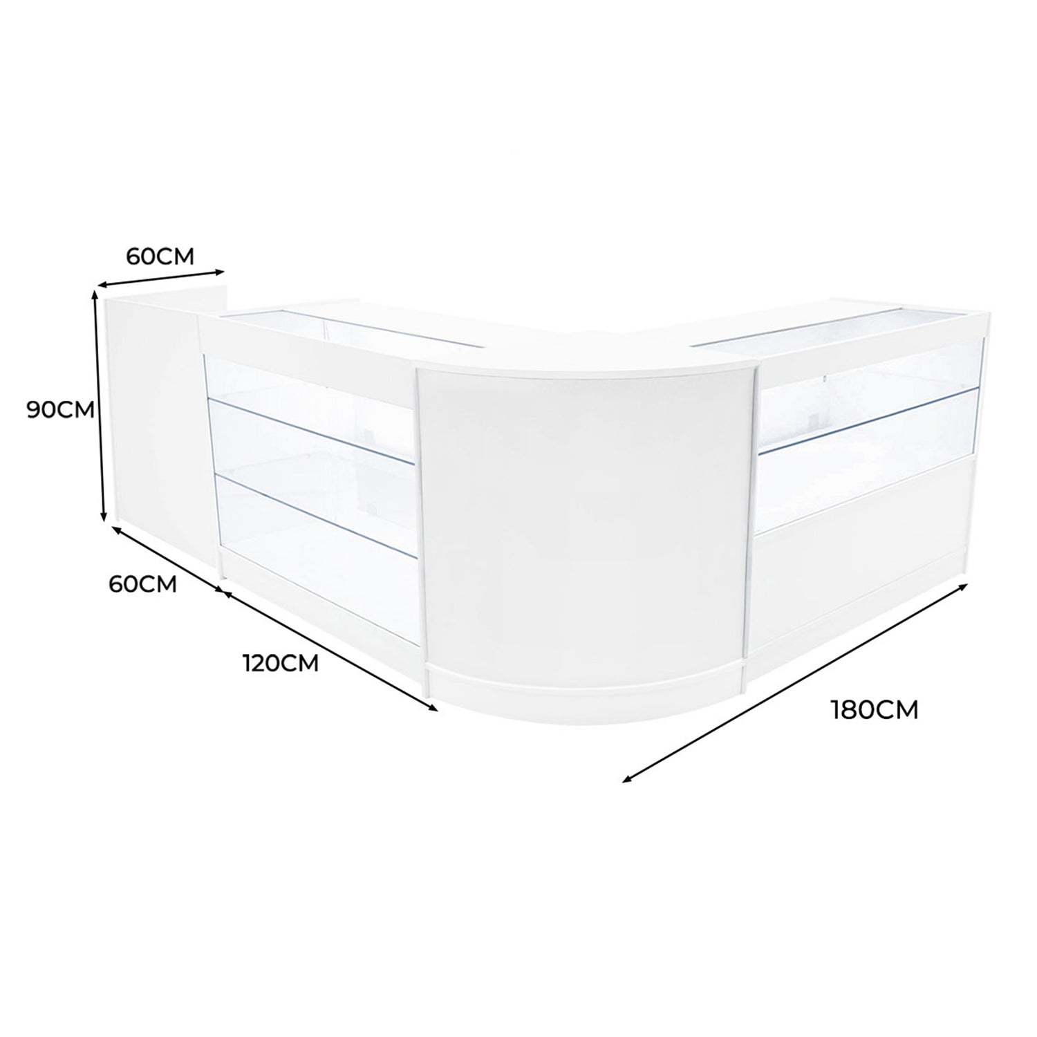 Tutti i banconi sono realizzati in MDF di alta qualità con finitura in melaminico resistente, che unisce durabilità e stile moderno. I modelli K1200 e C1200 sono inoltre dotati di vetro temperato per un'esperienza espositiva premium. L'intera collezione è pensata per affrontare senza problemi le sfide degli ambienti retail ad alta affluenza.