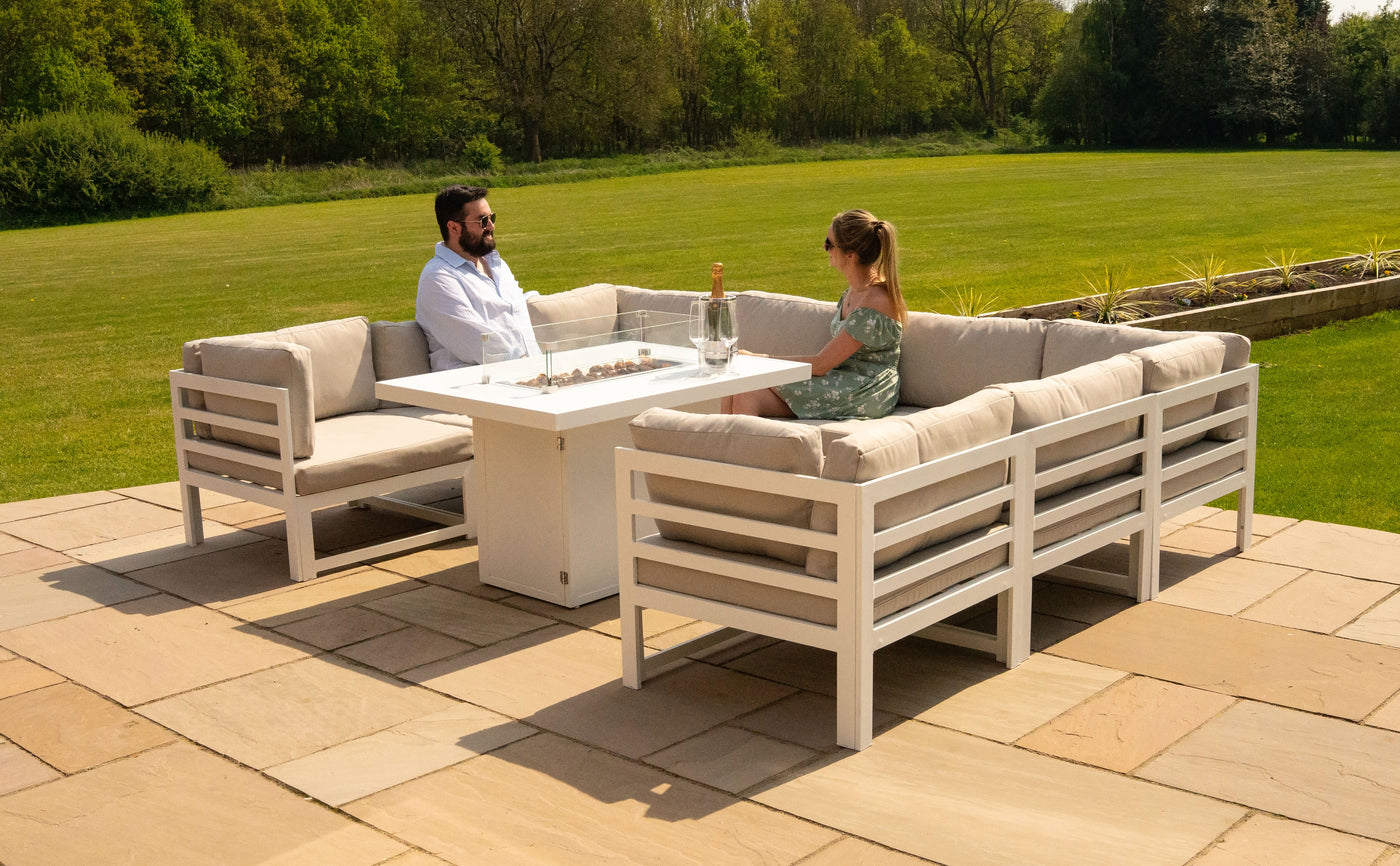 Set di Mobili da Giardino Modulari con Tavolo Braciere - Bianco