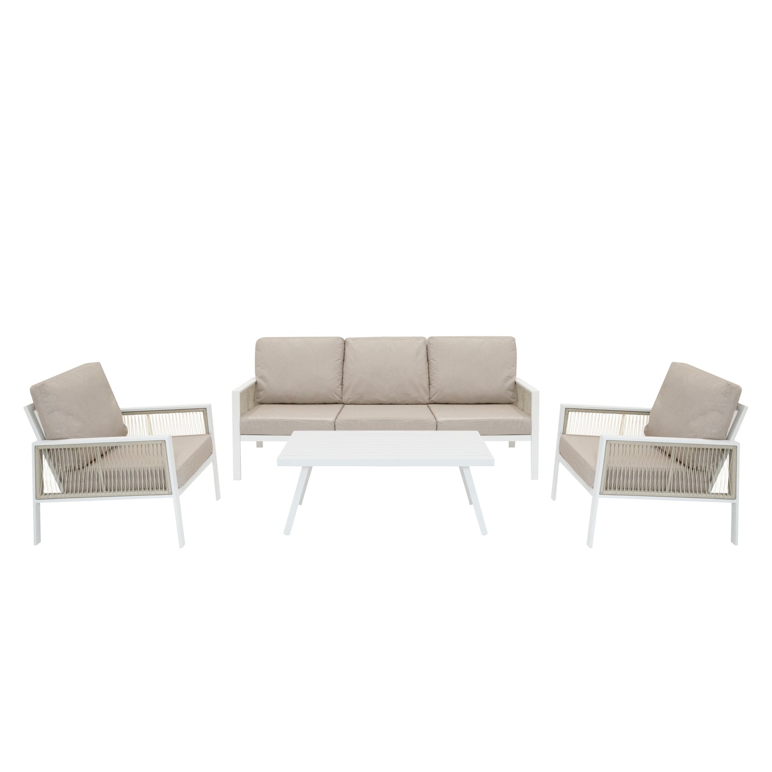 Set Divano da Giardino 4 Pezzi in Alluminio – Bianco
