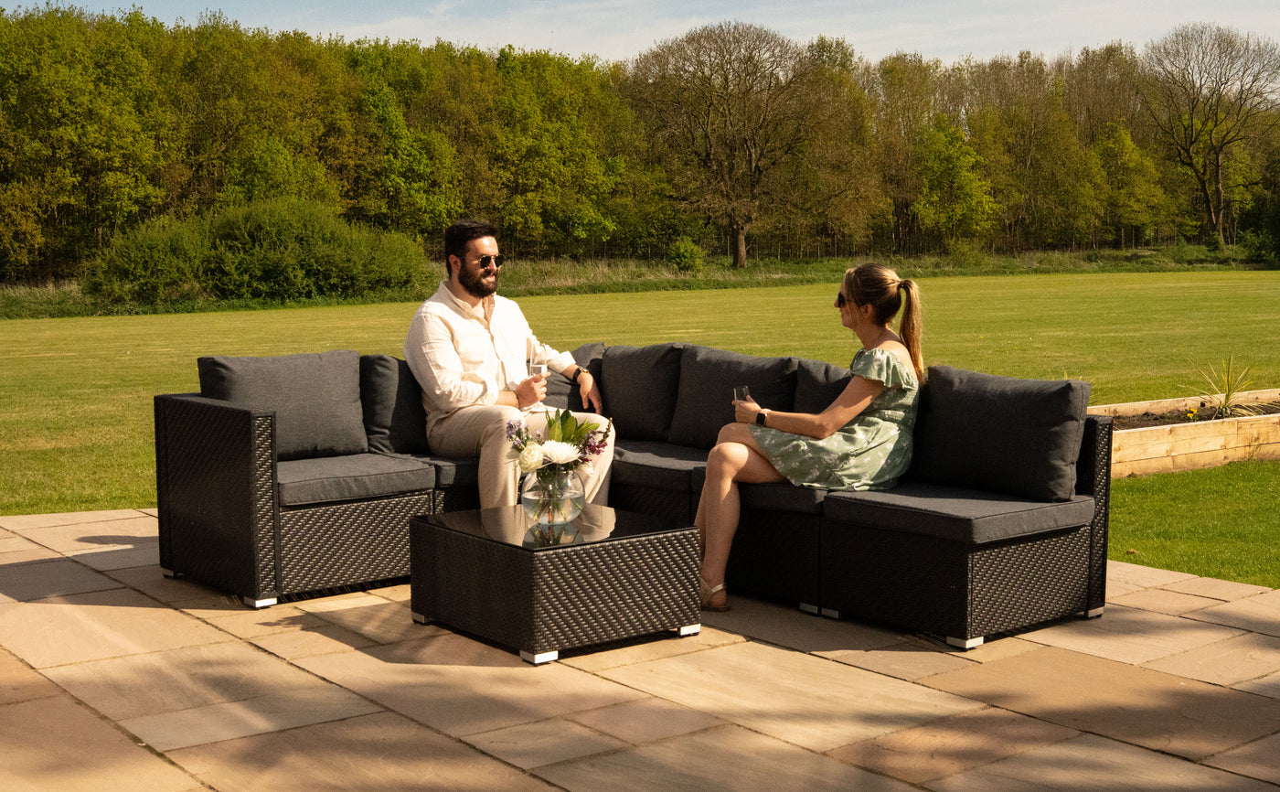 Ideale per giardini moderni, terrazze o balconi spaziosi, il set modulare è la scelta giusta per chi cerca un arredo da esterno personalizzabile, funzionale e senza tempo.