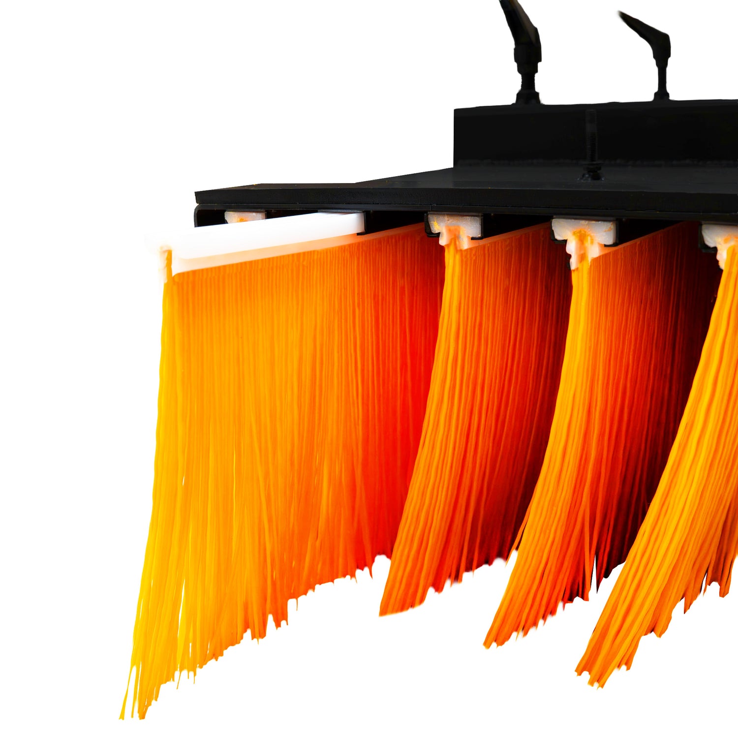 Realizzata per durare nel tempo, la spazzola è dotata di un telaio rinforzato in acciaio con finitura verniciata a polvere, resistente all’usura. Le sue 5 file compatte di robuste setole in polipropilene, ognuna lunga 27 cm e con spessore di 3,4 mm, assicurano un’azione di spazzamento efficace su una larghezza generosa di 130 cm, garantendo una copertura ampia a ogni passaggio e riducendo i tempi di pulizia mantenendo una finitura professionale.