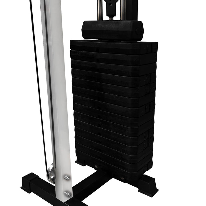 La struttura in acciaio rinforzato e le carrucole in nylon ad alta scorrevolezza garantiscono movimenti fluidi e costanti ad ogni ripetizione. Il sistema di regolazione dell’altezza, con incrementi di 14 cm lungo una colonna di 185 cm, permette di eseguire un’ampia gamma di esercizi con la postura ideale per ogni gruppo muscolare.