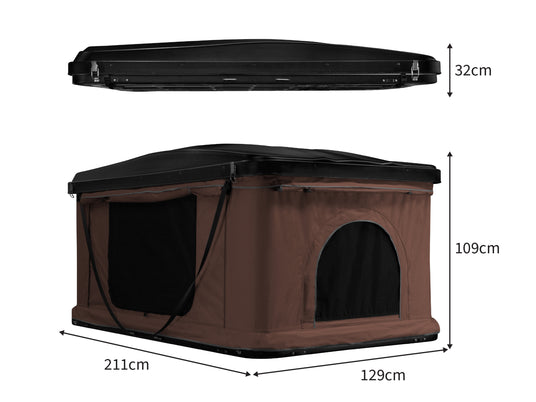 Scopri la comodità di una tenda da tetto pensata per le tue avventure all’aperto! Con dimensioni aperte di 211 x 129 x 109 cm, offre ampio spazio per dormire comodamente.